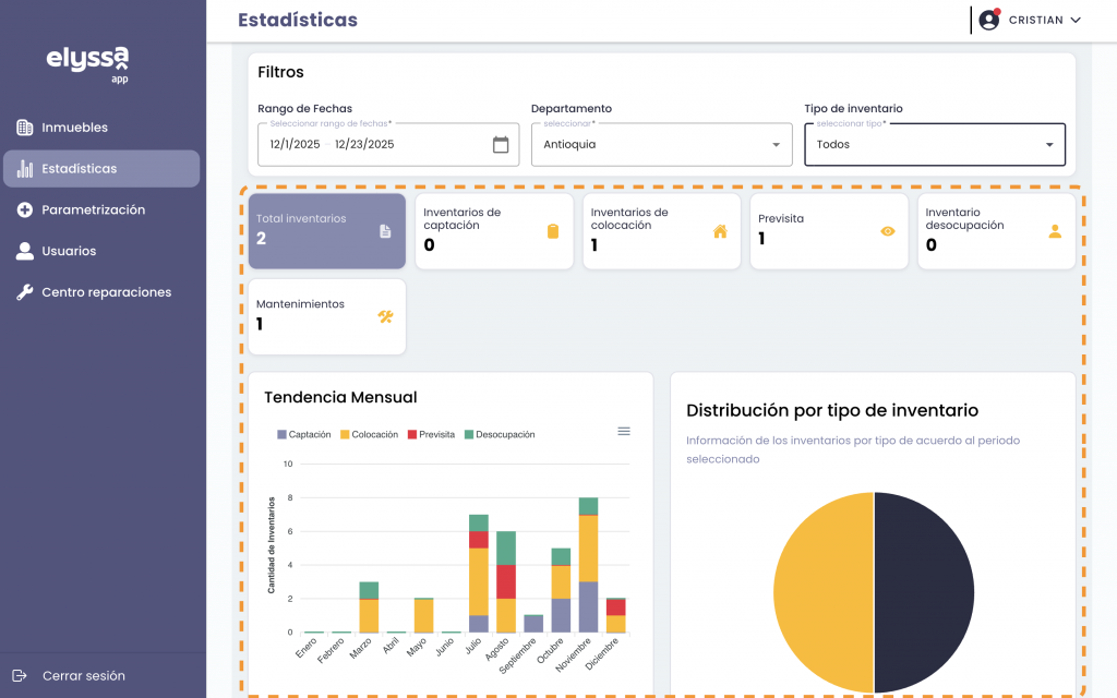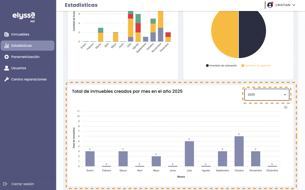 En este último gráfico, el año de consulta (por ejemplo, 2025) puede ser modificado según la necesidad del usuario, permitiendo analizar el comportamiento de creación de inmuebles en distintos periodos.